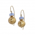 Brincos de gancho comprido e esfera em dourado com pedras em tons de azul. Altura aproximado 4 cm e esfera escovada com 16 mm.